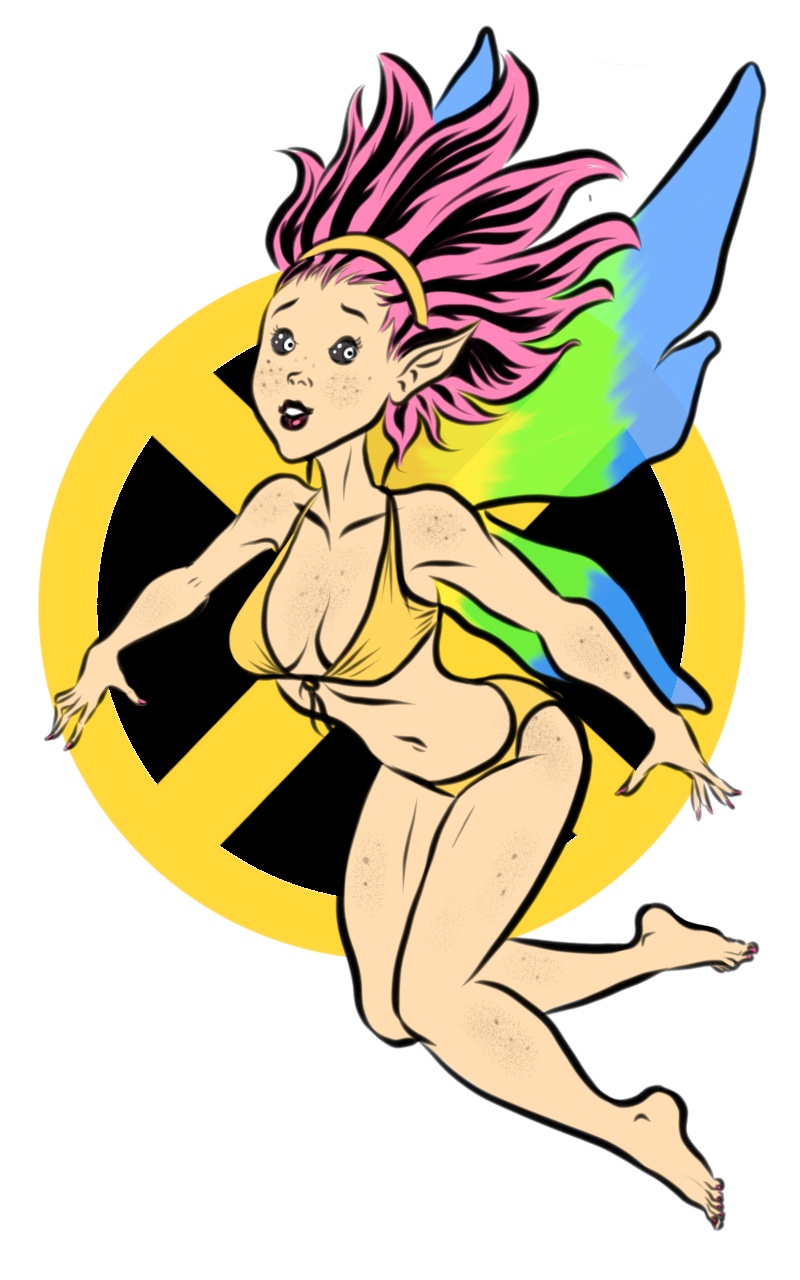 This is Megan Gwynn, aka Pixie of the X-Men. I liked her original look, as she actually looked like a pixie from a fairy tale book...of course this was before they changed her into run-of-the-mill hot-pink-haired-chick, complete with photoshopped porno faces. We all remember THAT PAGE where she's beaten with a bat...but with the Greg Land faces, it looked like she LIKES IT!