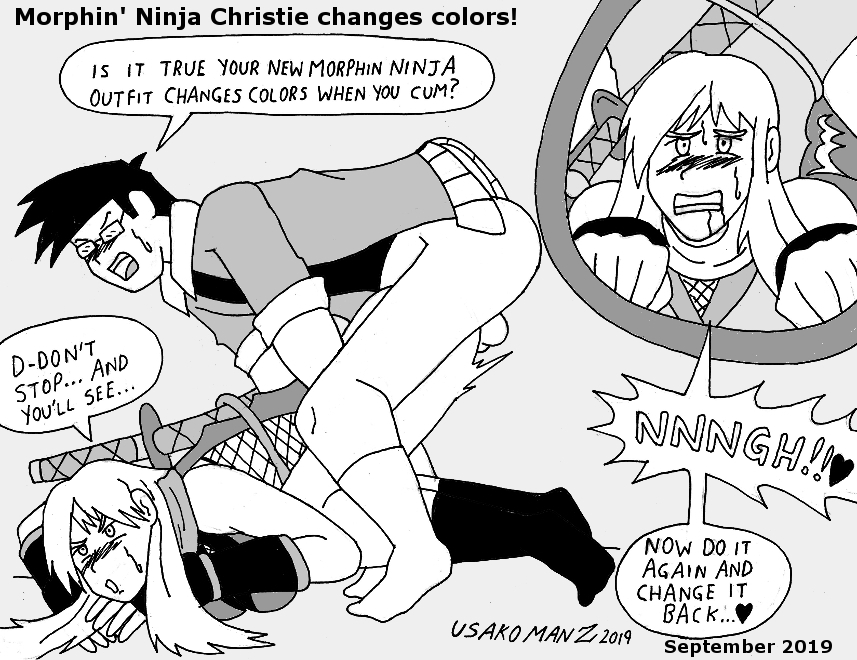 Usako and Christie try out her latest DLC ninja outfit that changes colors if she taunts, uses her Break Blow, or cums.