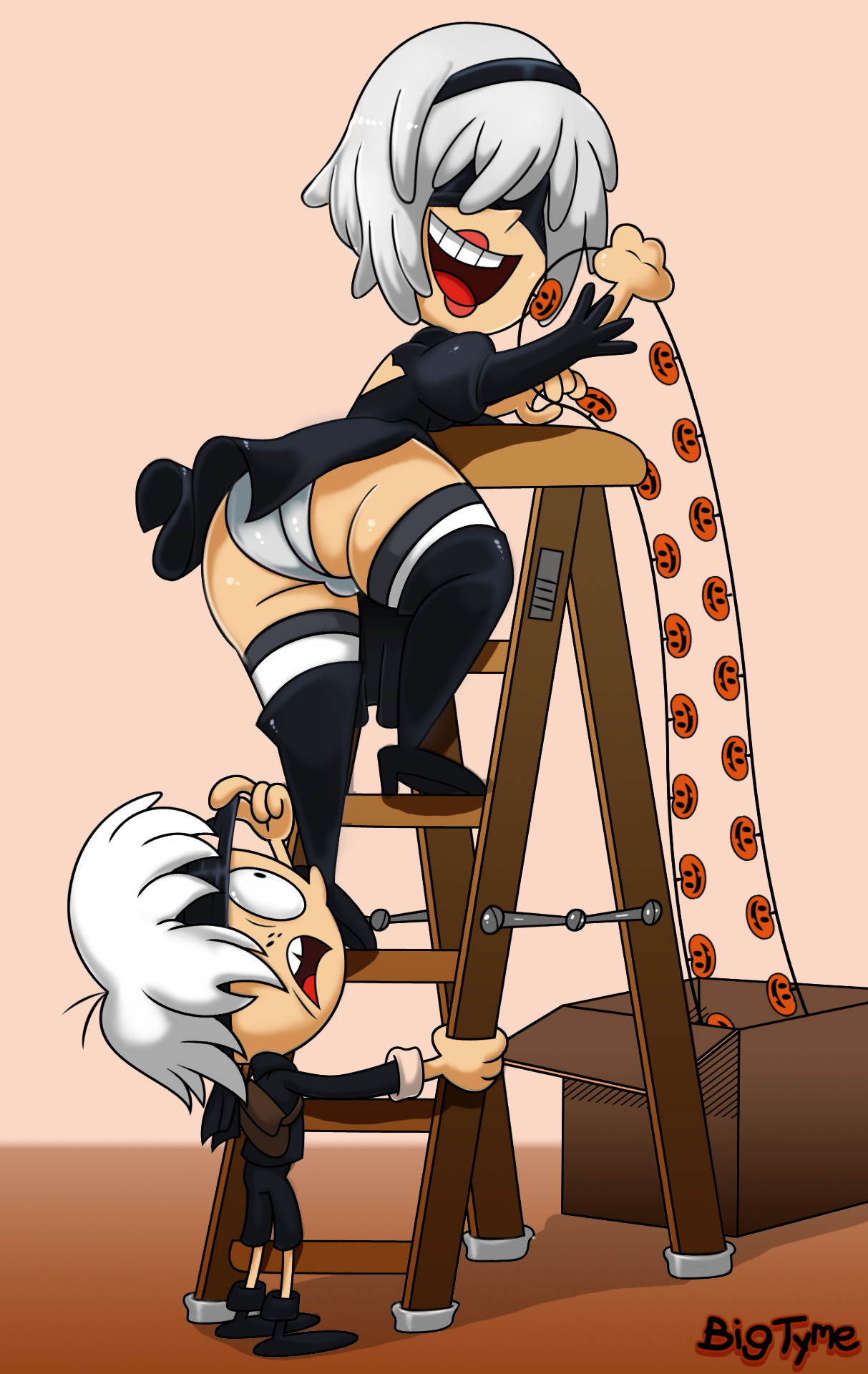 Rita & Lincoln are dressed as 2B and 9s from Nier Automata, and are on decor-duty.