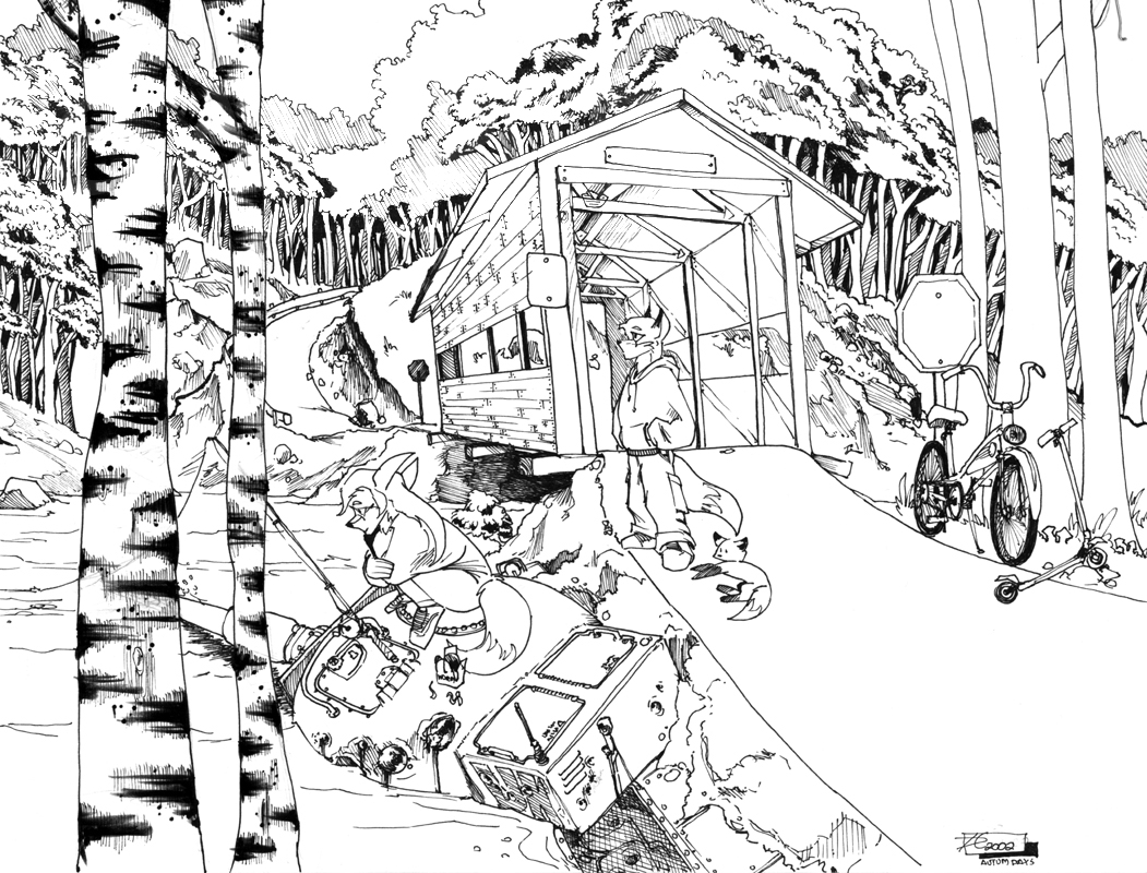 One of the better things i've done is a series of Post-Apocalyptic drawings. The wars long over, and everyone goes on not knowing what really happened.. just living their lives, very deep stuff.. It's in my top ten of the art I've done.