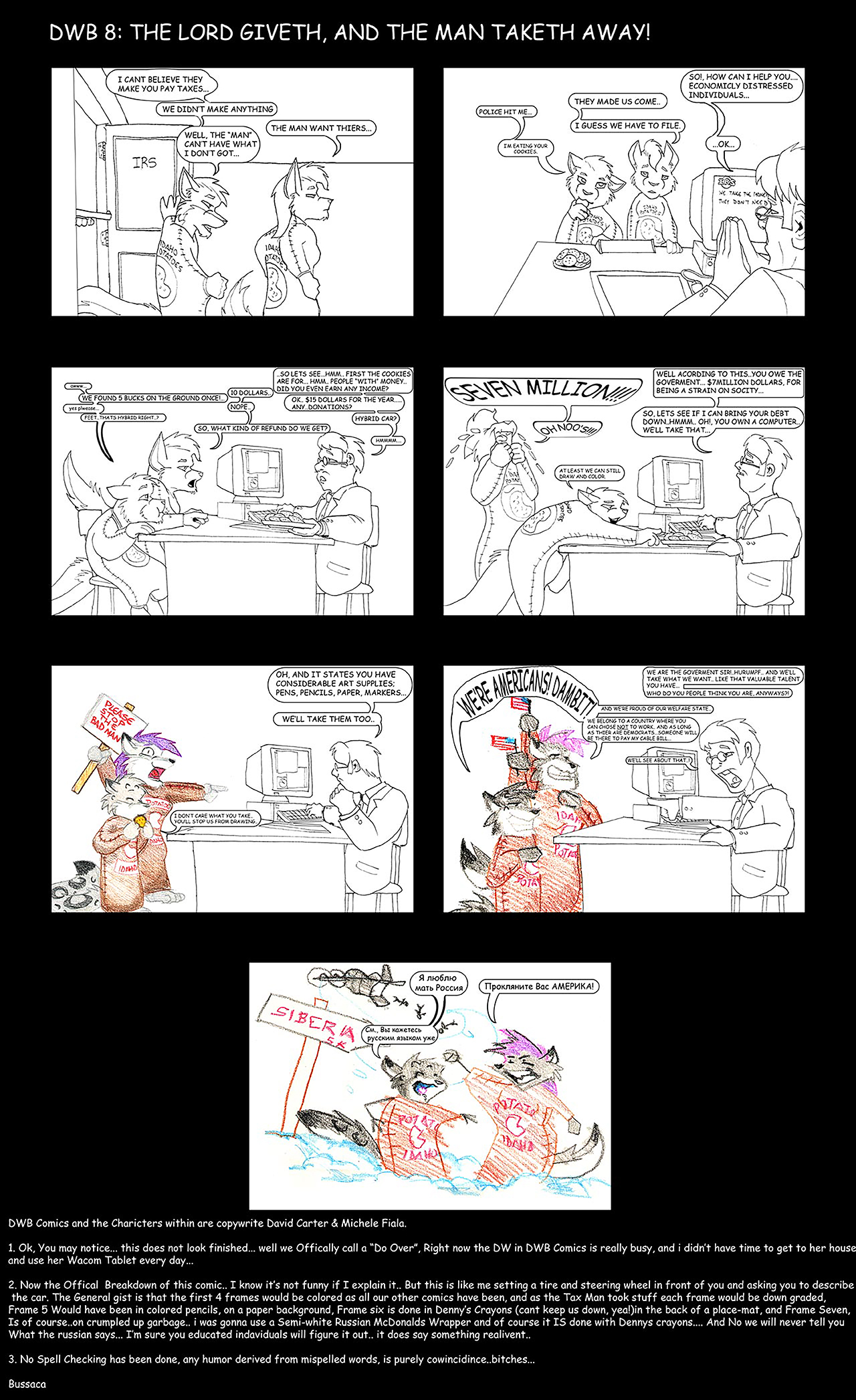 This though is our last comic.. we both had jobs, it wasen't the best premise, we really went out of our way to be funny..who can't make fun of the IRS? who hates taxes? and it's kinda good this was the last one..