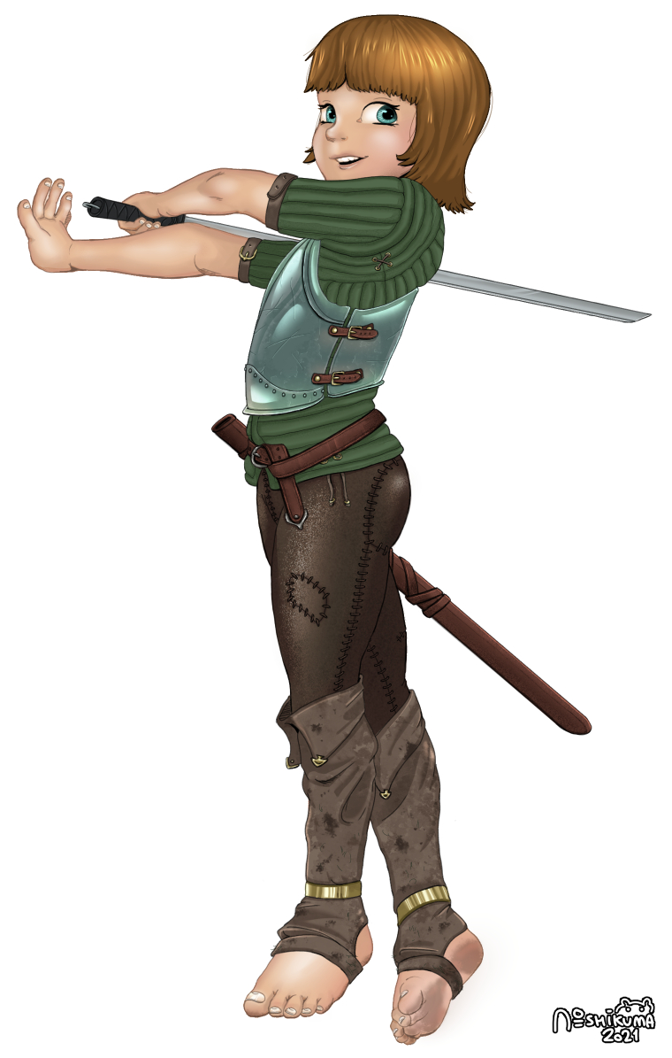 A return to form, after chafing off the rust. Ah, here I am again! I felt like drawing a beautiful nymphet showing her eagerness to learn. It was fun to come up with the outfit.