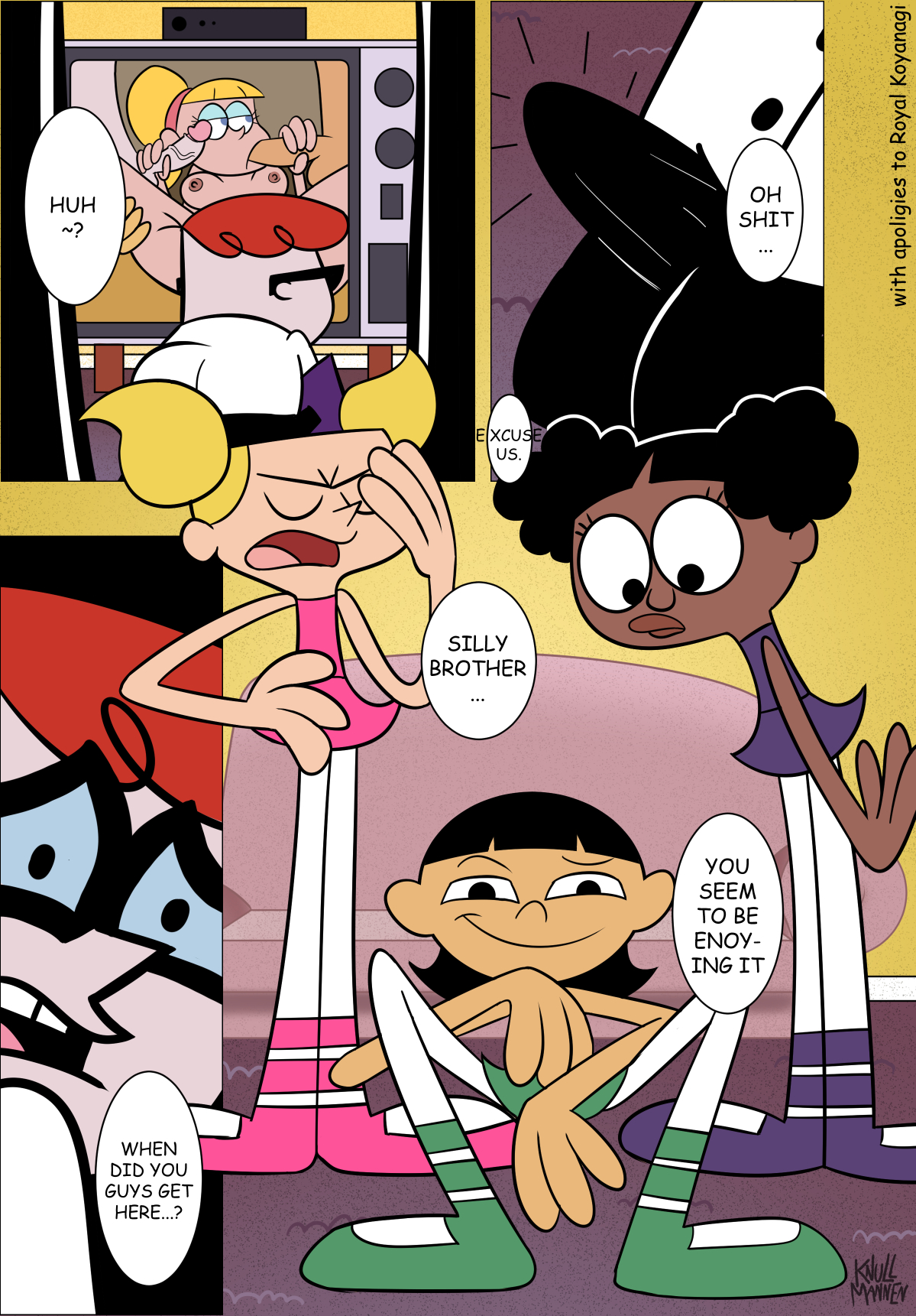 Was looking through some classic hentai mangas and couldn't help but imagine some western properties applied to some of the scenes. While not a perfect fit, an older sister and her 2 friends molesting the sister's brother seemed to fit with Dexter's Lab, so here we go!