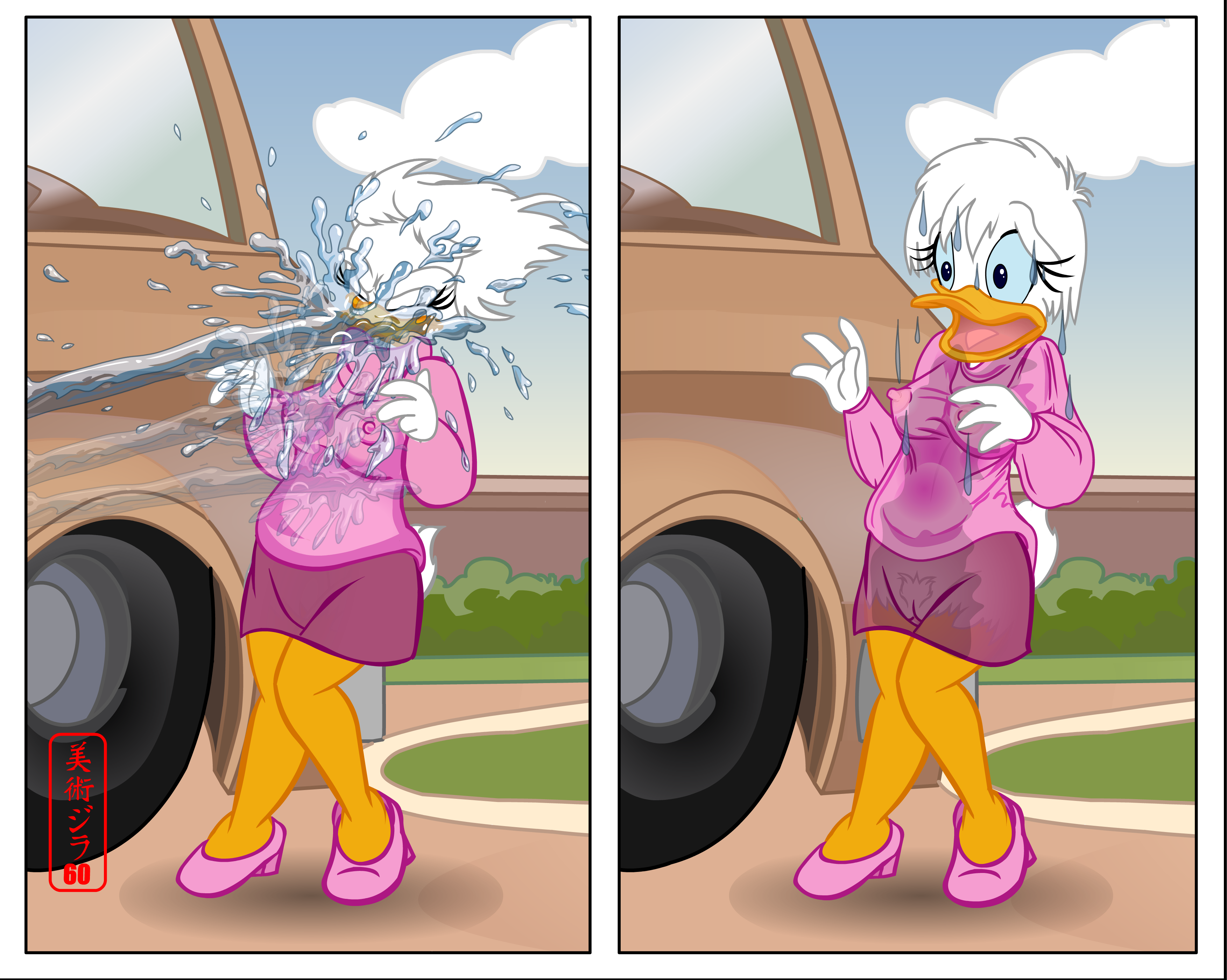 Daisy Duck gets the hose