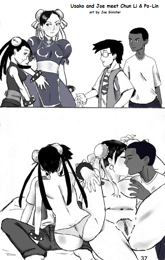 Here Chun Li met Po-Lin, a hardcore Chun Li fangirl, and sets up some fun time with Usako and Joe. At this point Po-Lin is probably a huge bag of emotions, both being starstruck with meeting the real live Chun Li in person, and also about to have her first time with fellow classmates she had small crushes on.