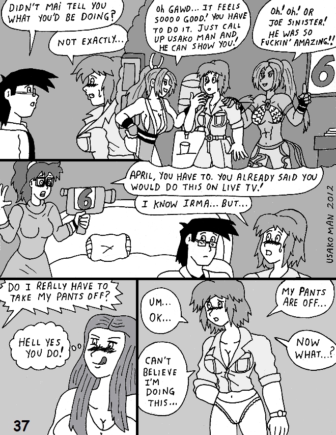 I kinda imagine Mai, Christie and April hung out, I guess maybe for an interview, something sexual or perverted came up, in which April had no idea what they were talking about, which sparked the whole 'wait.... you don't know what sex is...?' conversation. Though geez Mai and Christie, you could have at least warned her that getting naked and felt up everywhere was involved.