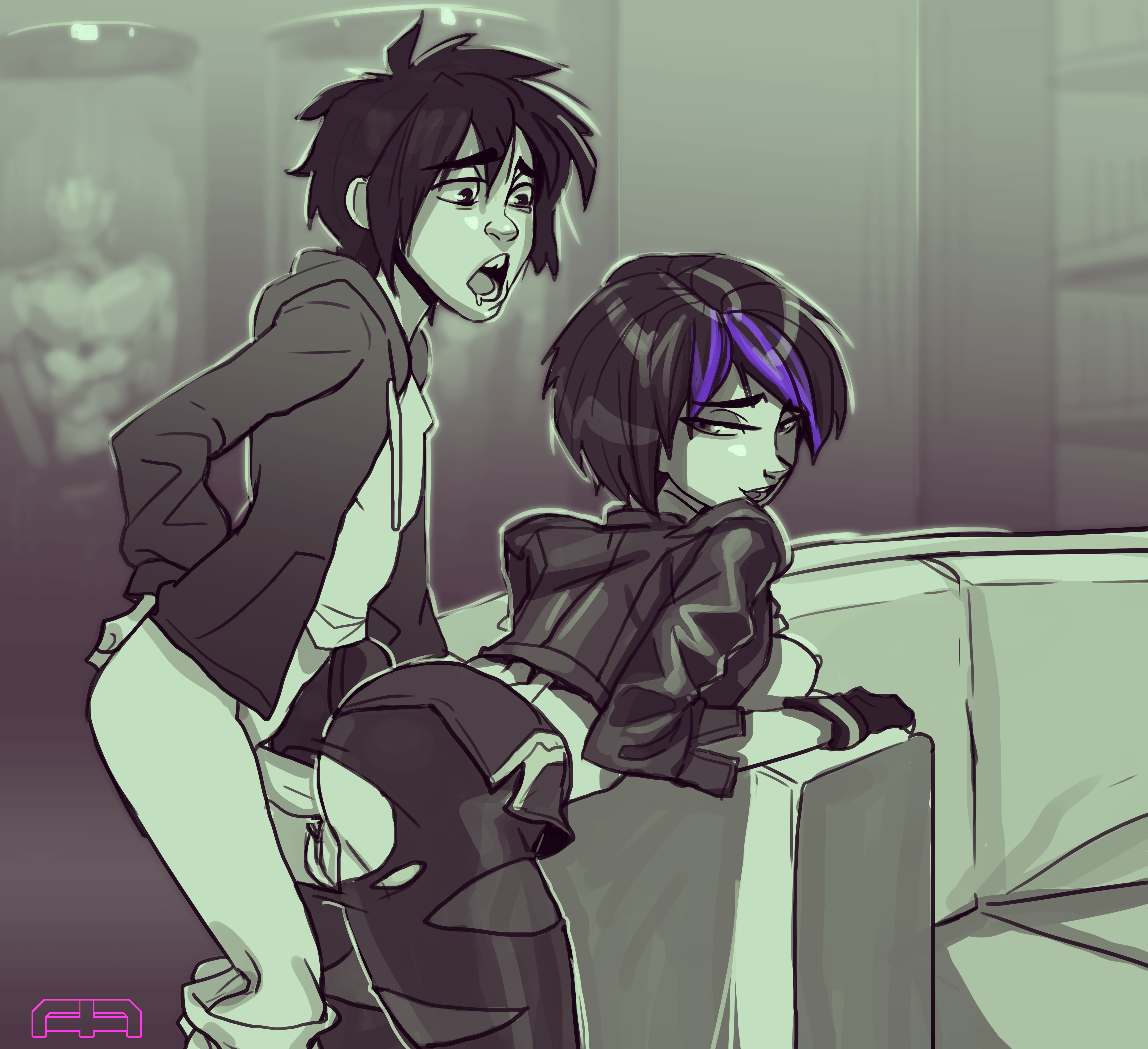 An commission pinup piece of Hiro getting some backdoor action from Ms. Tomago, done by the talented Andava!!