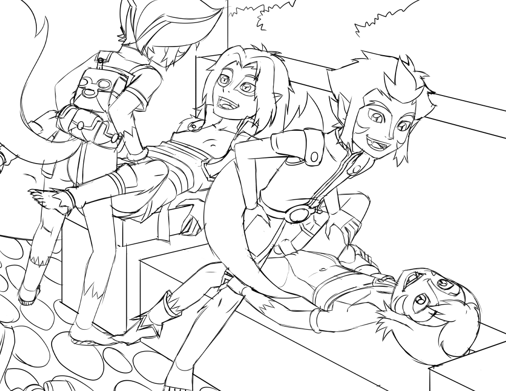 Here's a sketch of my next $5 request, this time of young Lion-O/Cheetara with Wilykit/Wilykat. Sorry for the late update but I wasn't able to get much done since the Jack/Katie animation. My sketches will likely be getting a bit sketchier as I am getting more confident in my ability to clean things up during the line phase. Will add lines then colors to this next, then will be starting on the Pietro/Wanda comic.