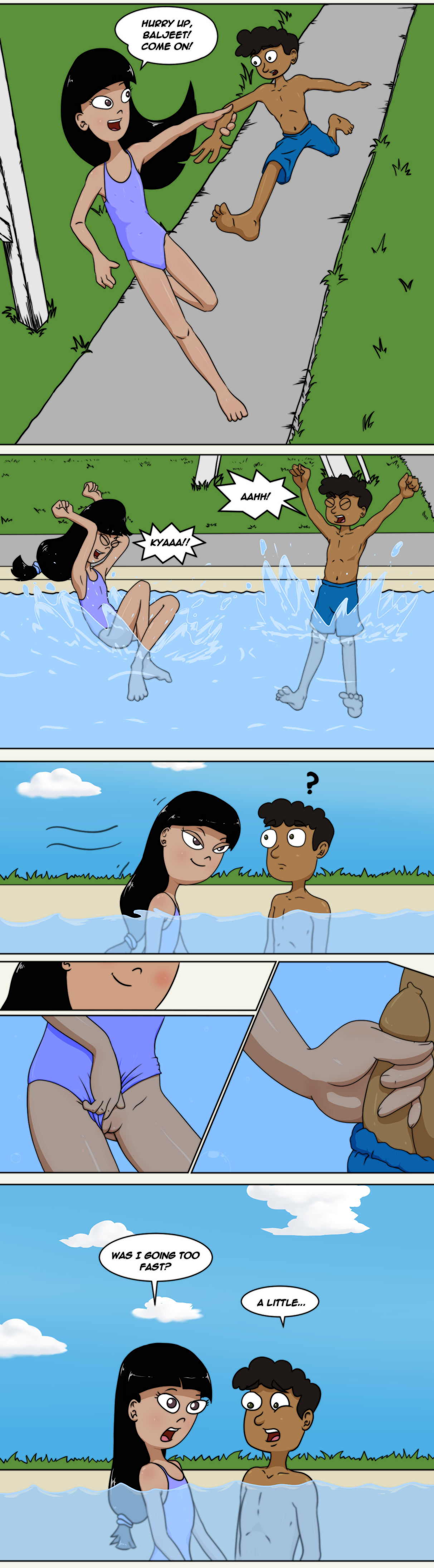 Ginger and Baljeet in a pool