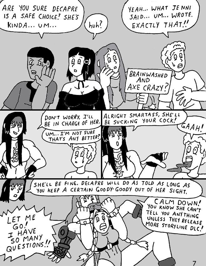 The Playas wonder how safe Decapre can be, and thanks to Brian, Juri chooses him as her partner. Honestly, I wouldn't feel safe putting it in Decapre's mouth. You just don't stick your dick in crazy.